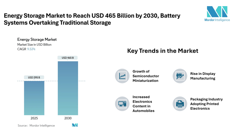 Energy Storage Market is projected to grow from USD 295 billion in 2025 to USD 465 billion by 2030, reflecting a steady compound annual growth rate (CAGR) of 9.53% over this period. This surge is largely driven by significant cost reductions in battery pack systems, supportive policy frameworks that encourage standalone storage solutions, and the growing need for flexibility as renewable energy such as solar and wind becomes more widely deployed.