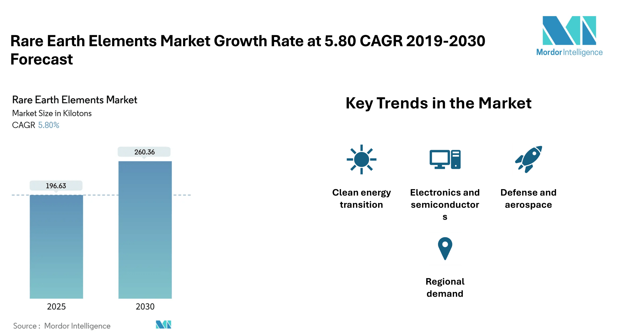 - Defense and specialized equipment – Although not the main focus in the Mordor Intelligence summary, these sectors often rely on rare earths as well.